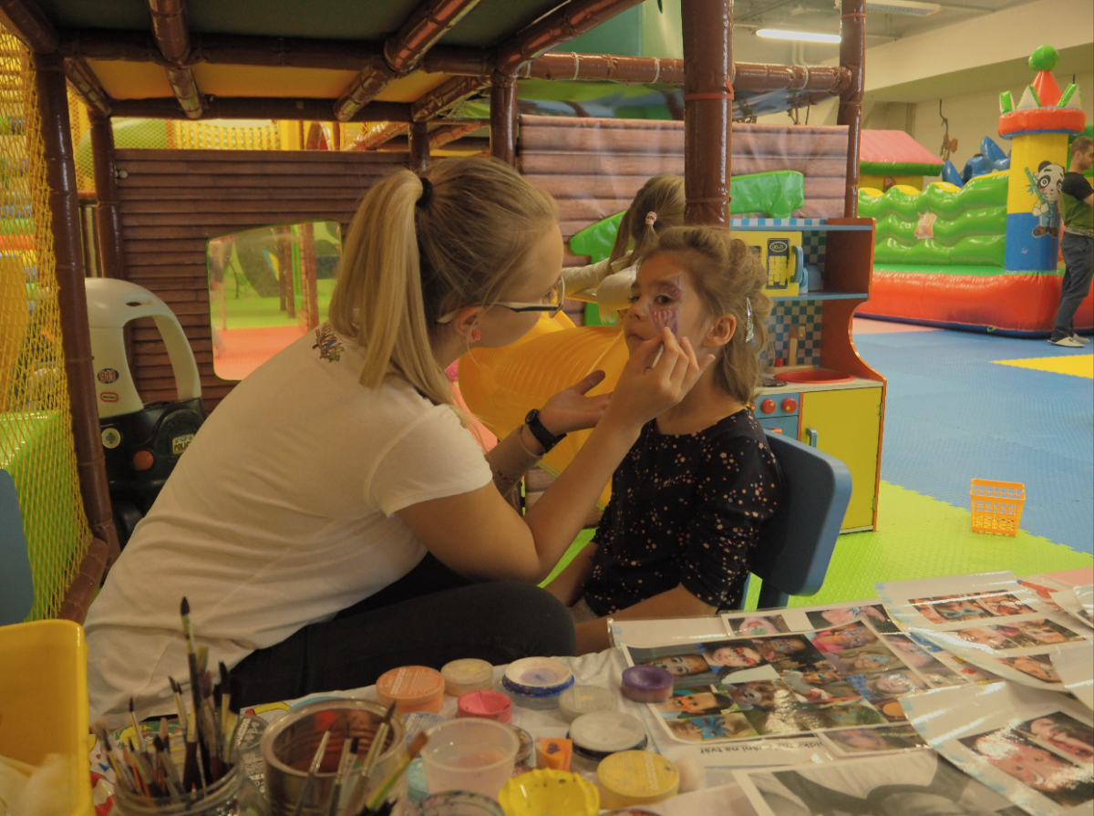 Když jsme se s Natálkou osvěžily džusem, vrhly jsme se zase do víru řádění. Asi nejoblíbenější věc v Amazonii je kolotoč, na který můžete naskočit, a pak je to opravdická jízda! Na kolotoči jsme visely poměrně často, skoro pořád. Teda když jsme zrovna neskákaly ve skákacím hradu nebo nehrály pohybové hry s animátorkami. Nebo když jsme si zrovna nenechávaly namalovat obrázek na obličej. O víkendu tady totiž vždycky bývá speciální program s animátory, kteří vymýšlejí pro děti různé aktivity. A během týdne probíhají zase různé soutěže a dílničky, kde se můžou děti učit vytvářet dekorace a všechno možné.