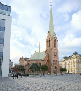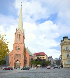 Červený kostel v Olomouci je novogotickou stavbou ve stylu severoněmecké cihlové gotiky, pro kterou je červená barva charakteristická. Jeho věž je vysoká 55 metrů a celý prostor již od roku 1956 slouží Vědecké knihovně jako sklad knih, který je veřejnosti bohužel nepřístupný. Projekt kostela je dílem architekta Franze Böhma, který mírně upravil Max Löw z Brunšviku. Stavba probíhala v letech 1901 až 1902. Kostel stojí na místě původní bastionové pevnosti. Urbanisticky byl kostel součástí záměru regulačního plánu města Olomouce od architekta Camilla Sitteho, jehož cílem bylo vybudovat moderní okružní třídu s různorodými monumenty... Povídáme si s architektem Miroslavem Pospíšilem o historii této krásné stavby a mrzí nás, že v dnešní době není určena pro širokou veřejnost. Dozvídáme se ale skvělou novinku. V blízké době se mají knihy z Červeného kostela přesunout do nového deposita mimo centrum: „Aktuálně Červený kostel vnímám jako zakletý zámek. Denně kolem něj chodíme, skrz vitrážová okna vidíme regály s knihami a představujeme si, co tam asi je. Jak to uvnitř asi vypadá? Díky tomu, že budou knihy přemístěny jinam, nabízí se zpřístupnění tohoto objektu veřejnosti,“ říká architekt.
