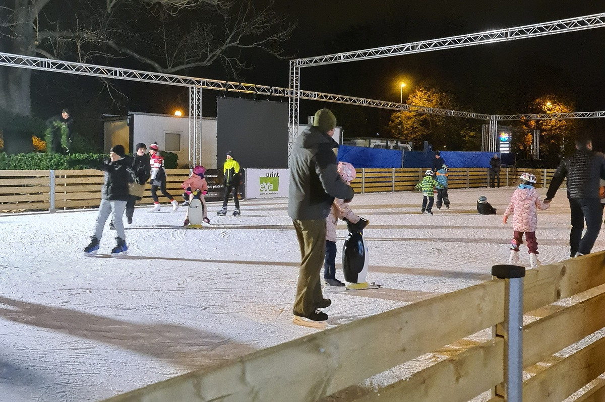 Až do půlky ledna si můžete zdarma zabruslit na ledové ploše na tržnici