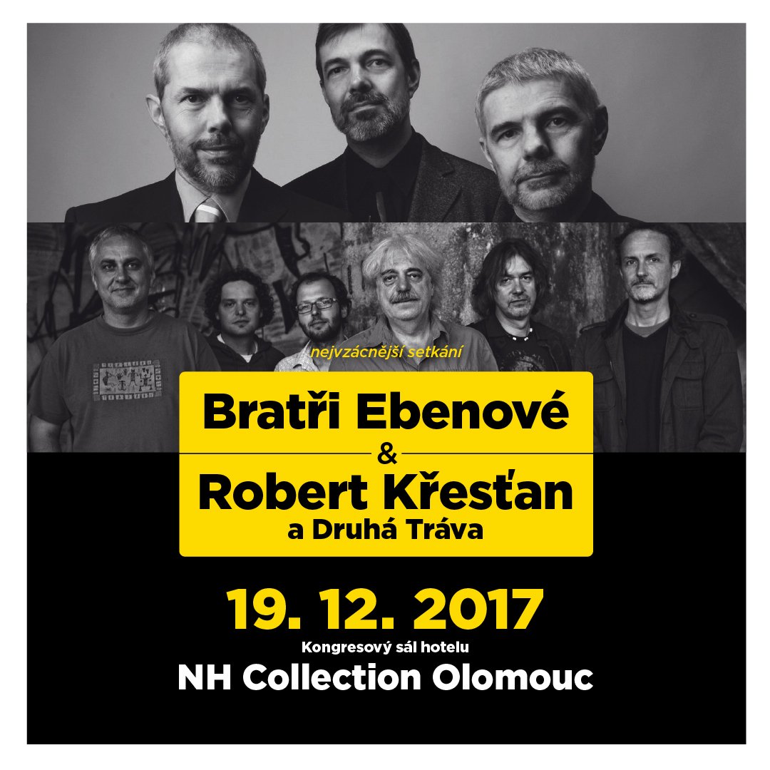 Na pódiu kongresového sálu hotelu NH Collection Olomouc Congress se v úterý 19. prosince 2017 potkají dvě výjimečné formace: Bratři Ebenové s kapelou a Robert Křesťan s Druhou trávou.