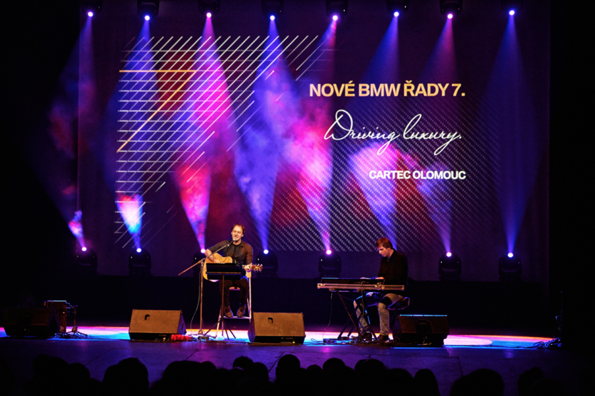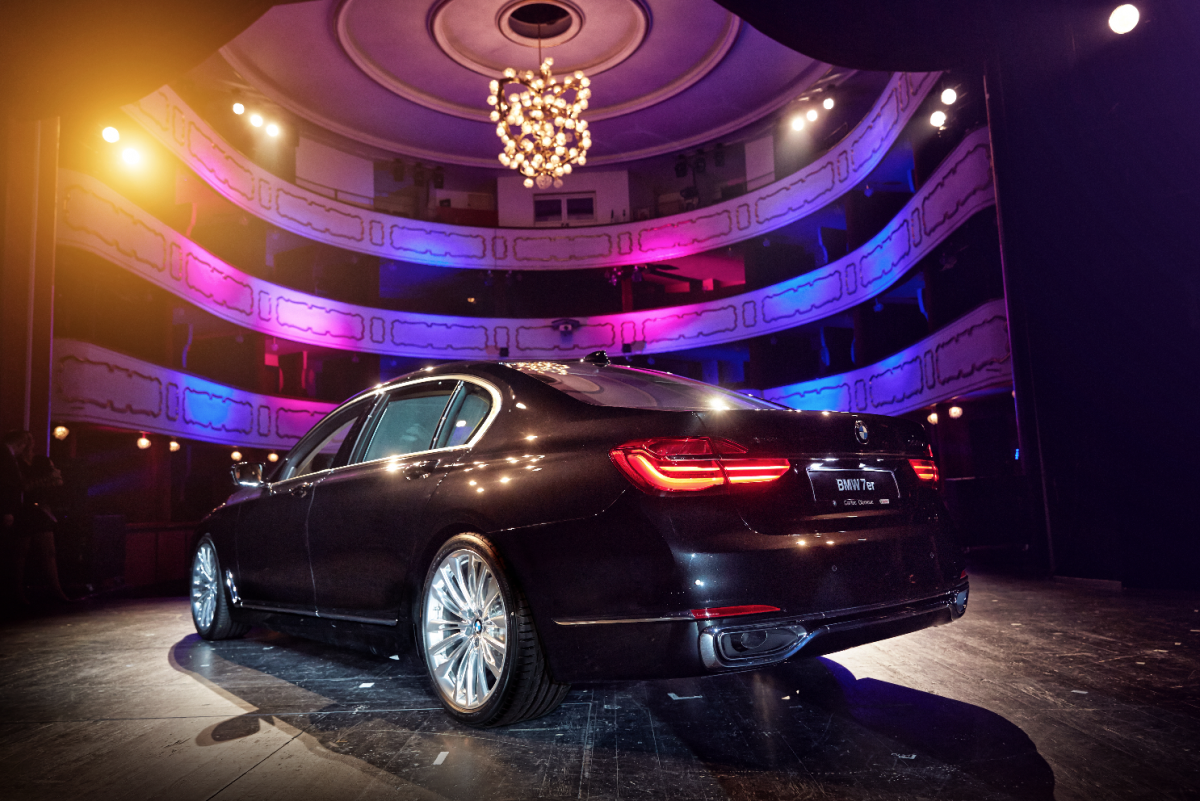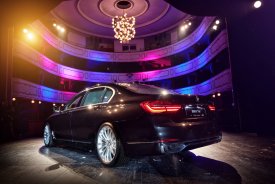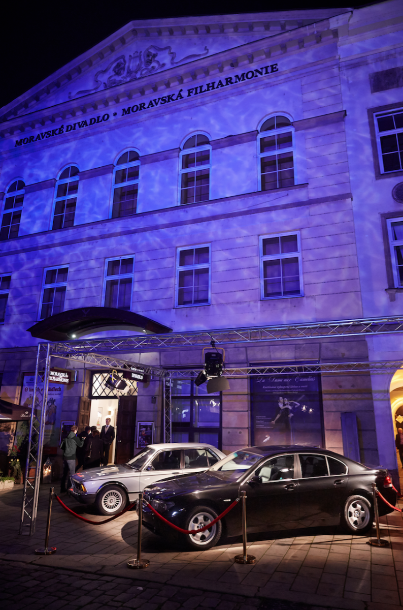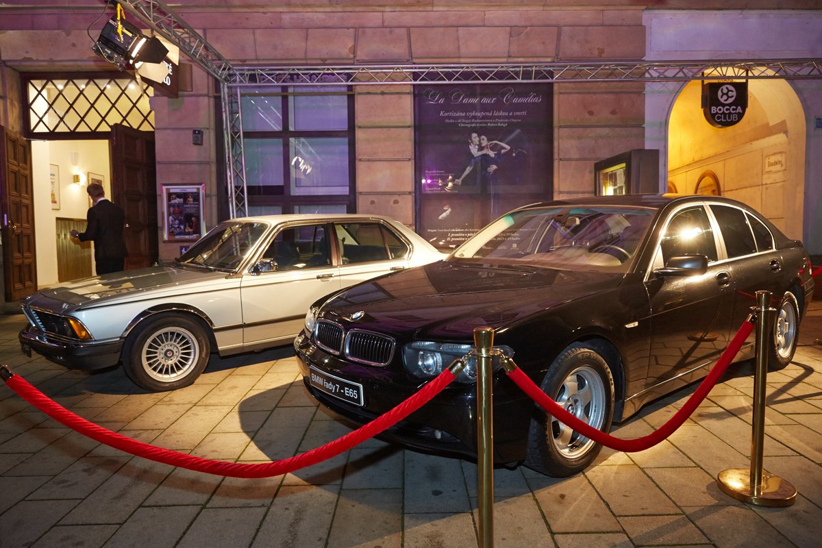 Už při vstupu do Moravského divadla Olomouc přivítali hosty dva nablýskaní krasavci. Konkrétně E23 (úplně první model BMW 7 z roku 1977) a E65 (4. generace řady) – oba dva předchůdci největší hvězdy večera, která se za nějakou dobu teprve měla představit na jevišti.