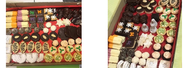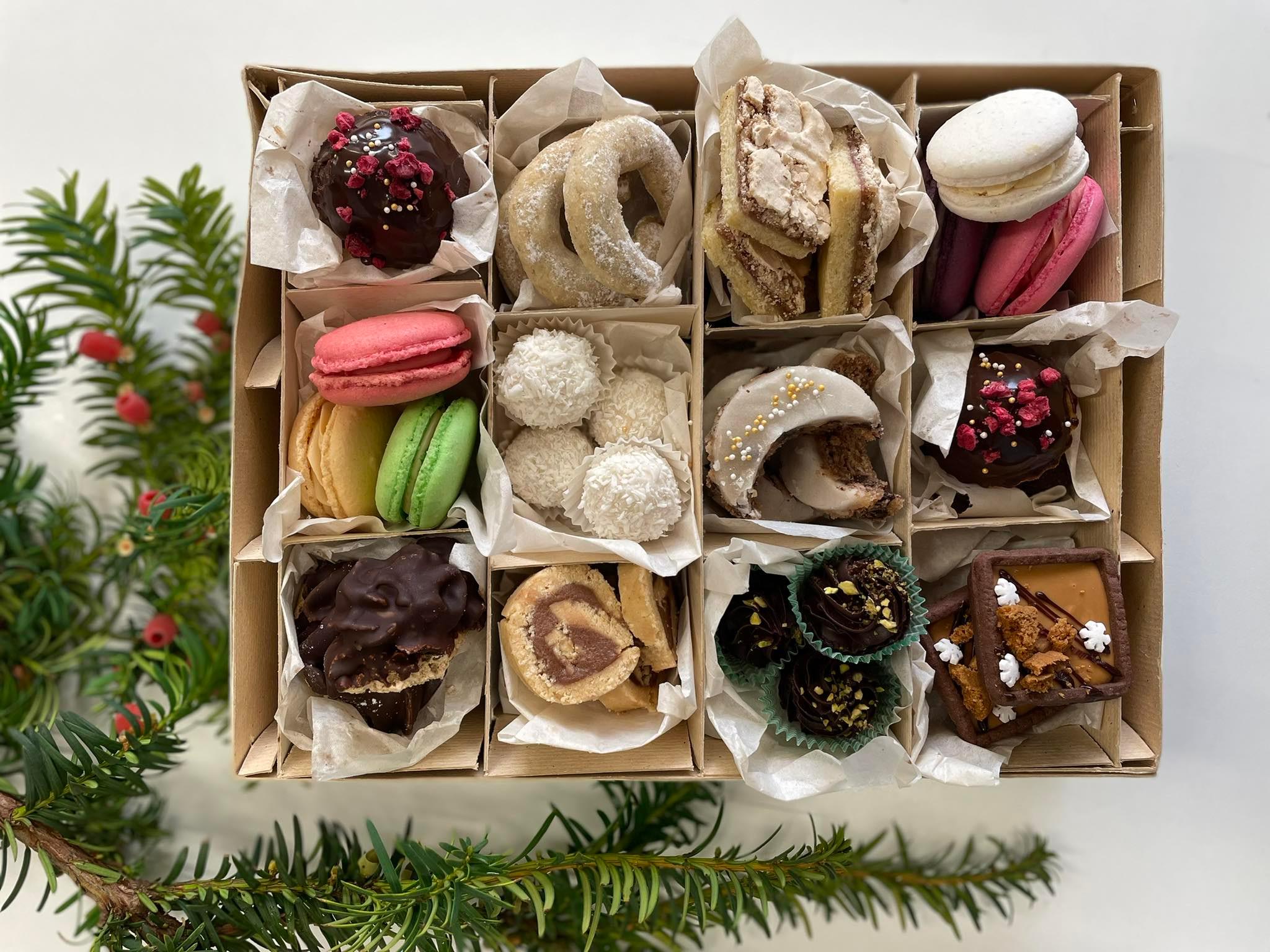 Letošní vánoční cukroví v oblíbené cukrárně Sladký Méďa obsahuje deset druhů po pěti až šesti kusech od každého druhu. Můžete se těšit na pařížské rohlíčky, vanilkové rohlíčky, makronky, opilého izidora, raffaello kuličky, linecké s ořechovou krustou, čokokošíčky se slaným karamelem, vosátkovou roládu, rumové rohlíčky a čokoládové lanýže s pistáciemi.