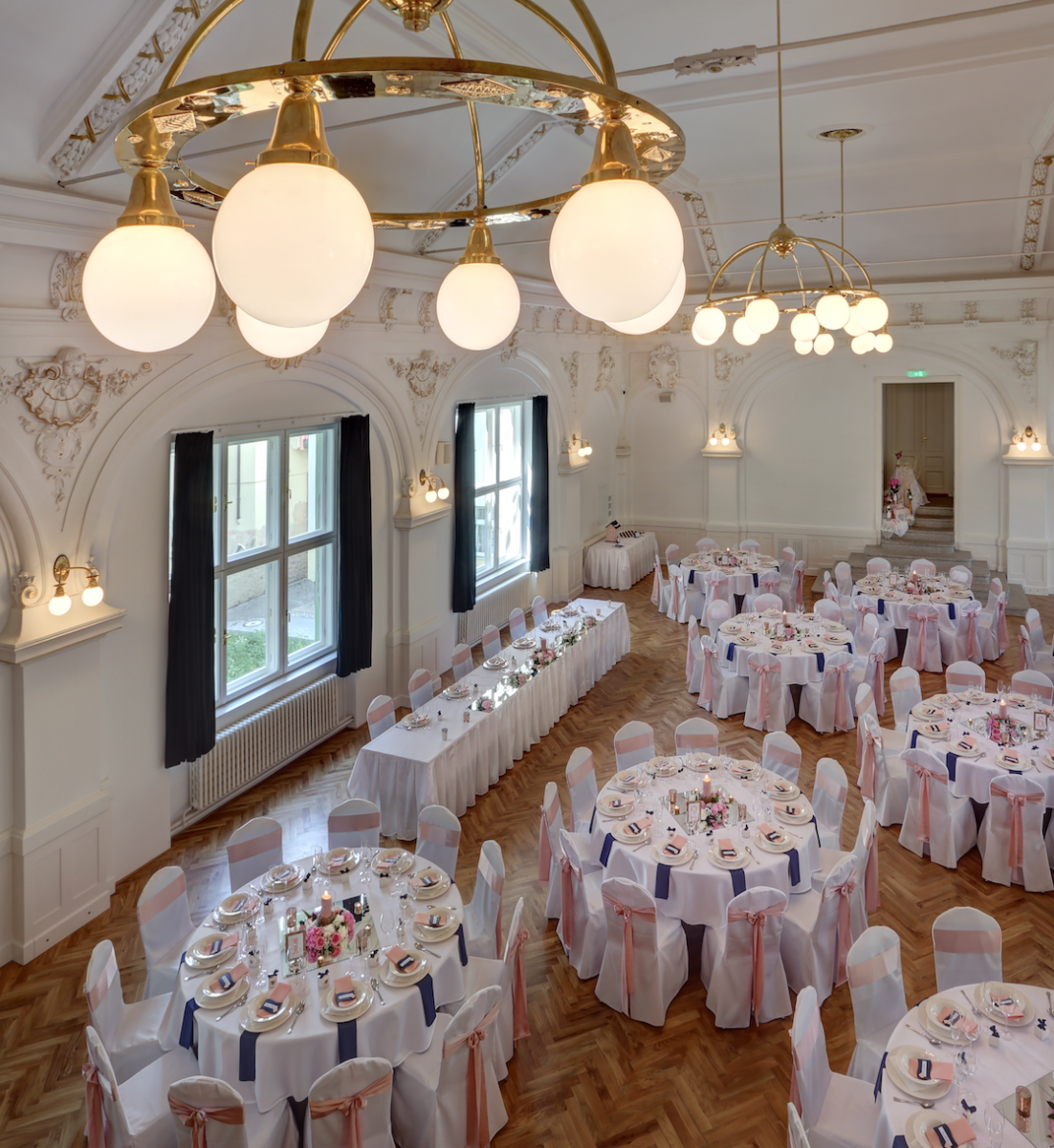 Po rozsáhlé rekonstrukci DŮM U PARKU znovu ožívá – ke dvornímu křídlu se dodala ještě minimalistická přístavba, protože společenskému sálu chybělo předsálí – nově uvnitř najdete i šatní pult, menší bar či terasu pro kuřáky. Interiér uvnitř je čistý, bílý, lehký.