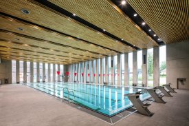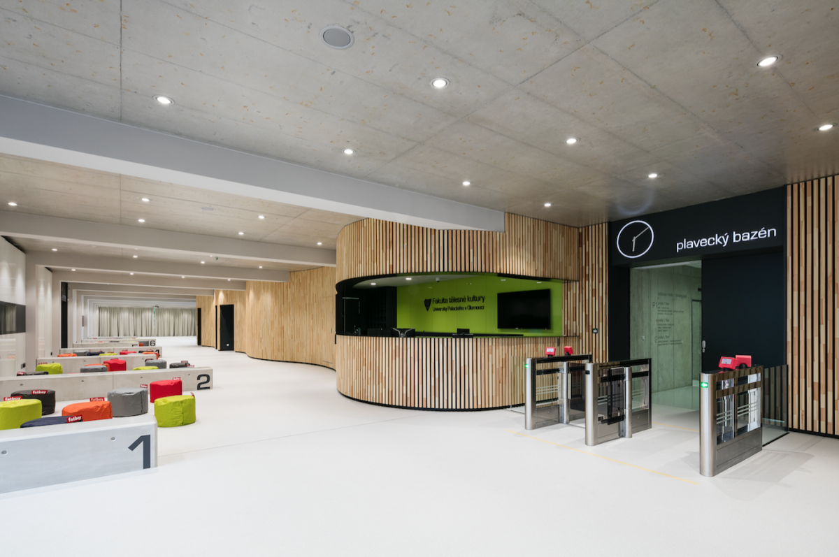 Od běžecké dráhy chtěli v atelieru-r tedy začít. „Říkali jsme si, že by měla být v patře, pokud má být vodorovná. A že by možná mohlo stačit 50 metrů. Nachystali jsme tedy ,páteř běžecké dráhy‘, která se však nakonec nerealizovala. To, co se ovšem z dráhy zachovalo, jsou rozměry místního koridoru – ten je totiž dimenzován přesně podle čtyř běžeckých drah, plus odstupy po stranách a doběhy na konci.“