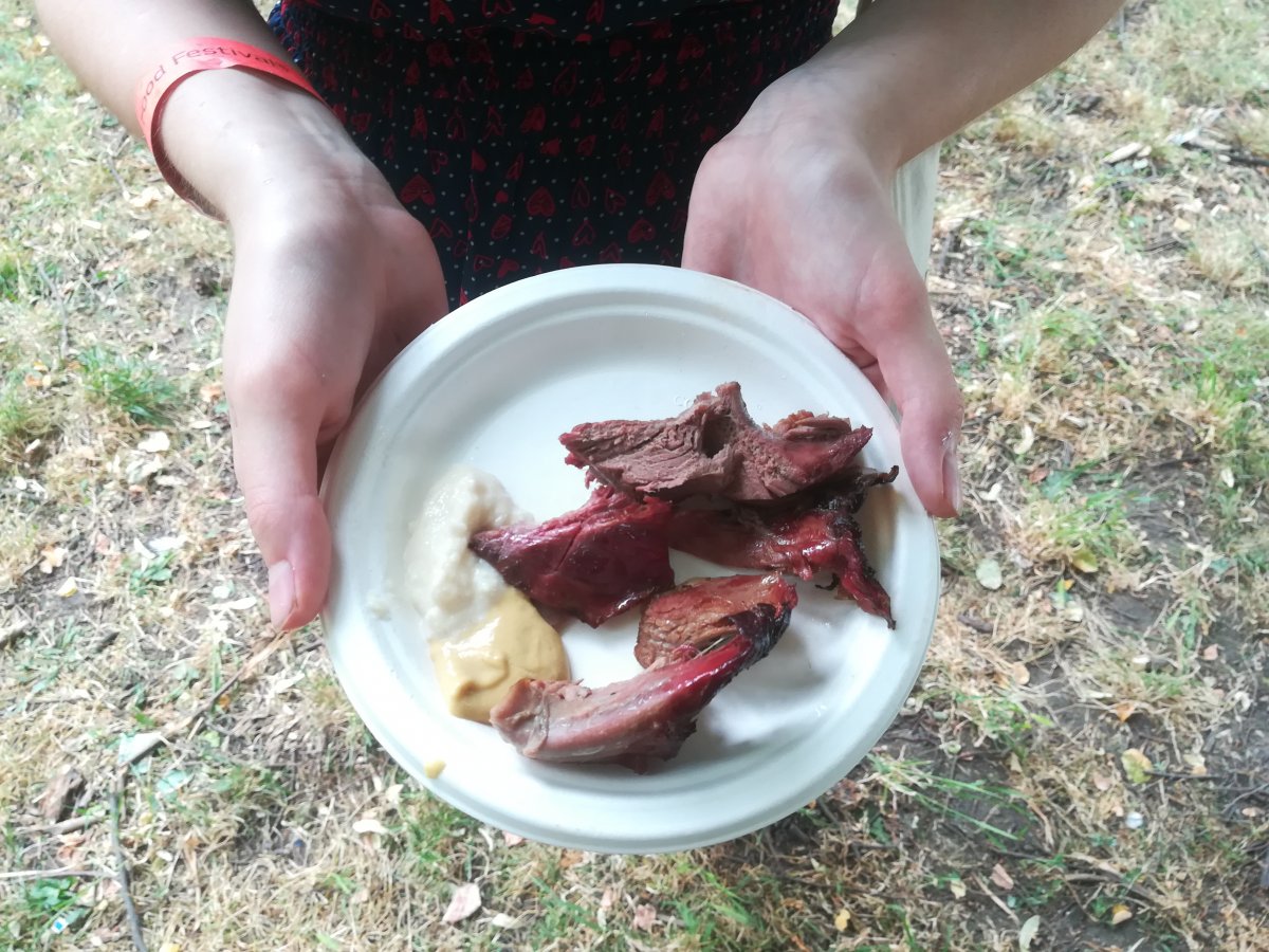 S degustačním talířkem i vidličkou jsme pomalu procházeli areál dál. Zaujal nás především kiosek nabízející grilované maso ze pštrosa nebo býka z Marimas a ryze tradiční lokše s trhaným vepřovým masem, které připravili v Lázních Slatinice. Po vydatných pokrmech jsme se rozhodli pro sladké tečky v podobě kokosového donutu ostravské firmy just DONUT, vypečeného cupcake od Buchet v zástěře a křehké makronky z cukrárny Ollies. A protože letos na festivalu mysleli také na alergiky či vegany, ochutnali jsme lahodný tofu krém s ovocem značky Lunter. Pro všechny milovníky exotických chutí připravila Nepálská restaurace The Kathmandu šafránovou rýži, nebo domácí mangovo-jogurtový nápoj. Rozhodli jsme se také podpořit neziskovou organizaci Mamma HELP, pomáhající ženám s rakovinou prsu a osvěžit se domácí melounovo-jahodou limonádou.