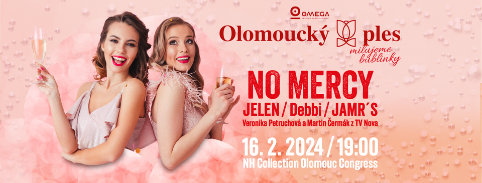 Omega Olomoucký ples s podtitulem Milujeme bublinky nabídne hvězdné hudební hosty, tanec až do rána, vizuální show, atraktivní doprovodný program, špičkovou gastronomii a spoustu bublin a bublinek. Slavnostní večer otevře talentovaná muzikantka, zpěvačka a autorka Tereza Balonová, návštěvníky také potěší skvělá zpěvačka a držitelka několika cen Anděl Debbi či fenomenální skupina JELEN. K tanci a poslechu bude hrát kapela JAMR'S. Ples vyvrcholí hlavním hudebním hostem večera – vystoupením kapely NO MERCY, mezi jejichž nejznámější skladby patří Where Do You Go, When I Die či Please Don’t Go.