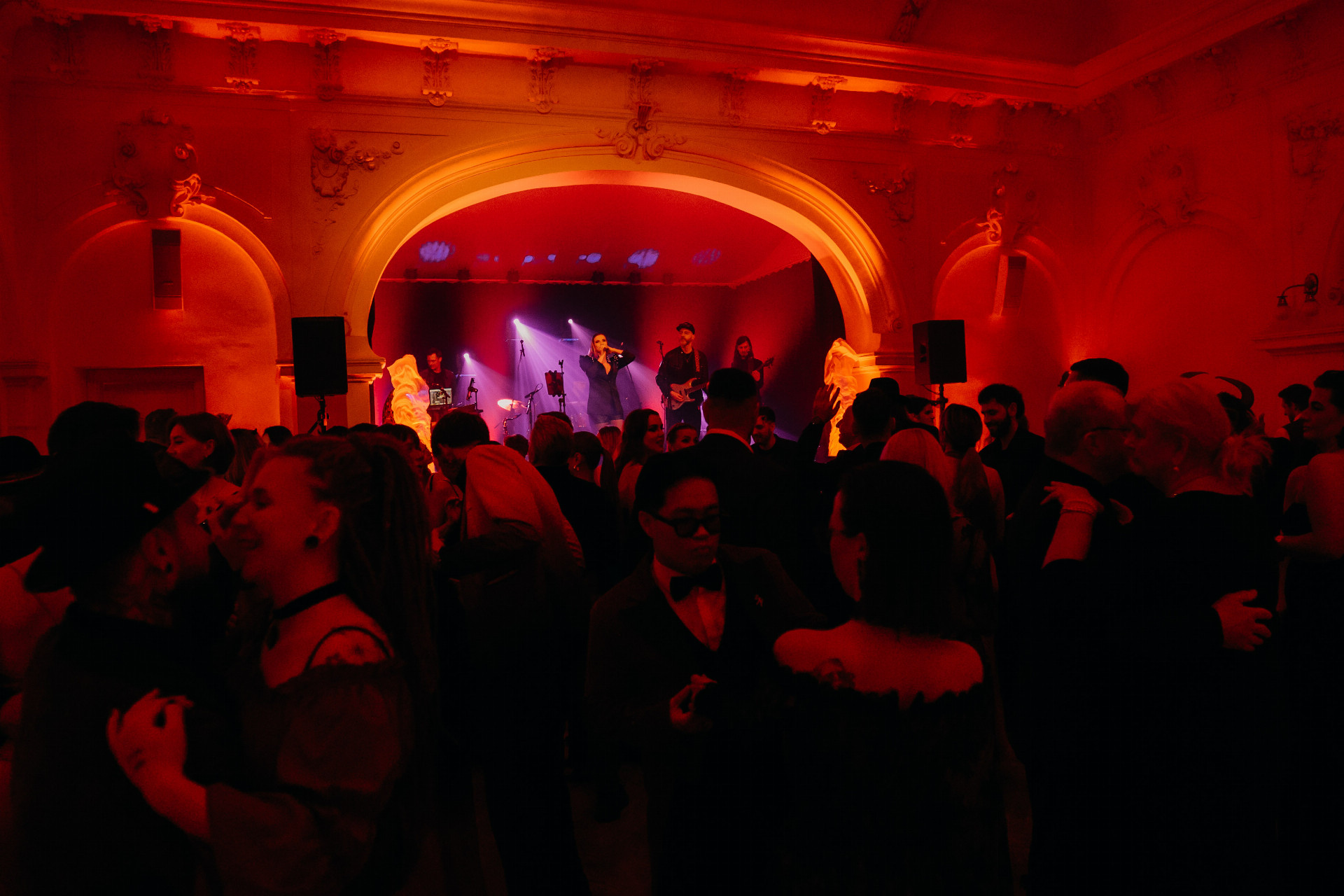 Tematiku Inferna podtrhla také celková scénografie – výrazné červené nasvícení, kouřové efekty a temně laděné dekorace vytvořily tajemnou a místy až dramatickou atmosféru, která se nesla celým sálem.