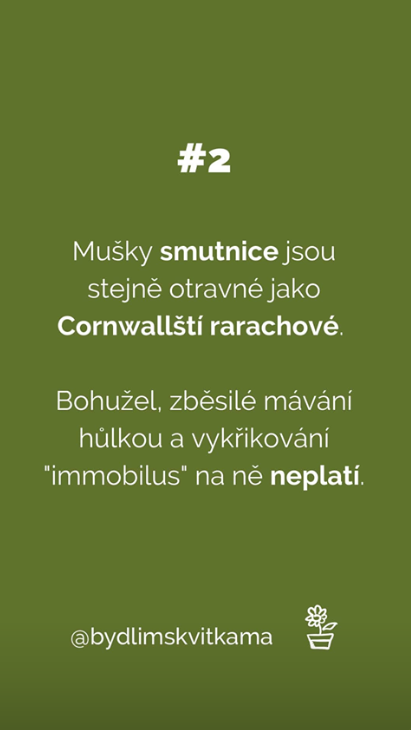 Skvělou inspirací pro život s pokojovkami je již kdesi nahoře zmíněný Lucčin instagramový profil Bydlím s kvítkama. „Založit si nový profil jen na kvítka mě napadlo úplně původně z toho důvodu, abych nespamovala příspěvky mou sociální bublinu na osobním profilu, kterou to úplně nezajímalo. Sledovala jsem pár českých a slovenských profilů zaměřených úzce na toto téma a přišlo mi, že mají hrozně fajn komunitu a měla bych tak možnost sdílet to s někým podobně „postiženým“. A zároveň, pokud bych mohla k tématu sama co říct, předat nějaké zkušenosti, byl by to příjemný bonus.“ Na profilu mimo krásných rostlin a tipů na pěstování najdete super vtipnou rubriku označenou hashtagem #rokskvitkama. „Je to takový experiment lomeno deník, kde se snažím skloubit dohromady rady, tipy, nápady a oblíbeného Harryho Pottera.“ Ale i ona se ráda inspiruje u ostatních – mezi její pěstitelské autority patří holky z Kvítka v bytě. Ty vydaly stejnojmennou knihu plnou základních informací o pěstování, ideální pro začínajícího zahradníka.