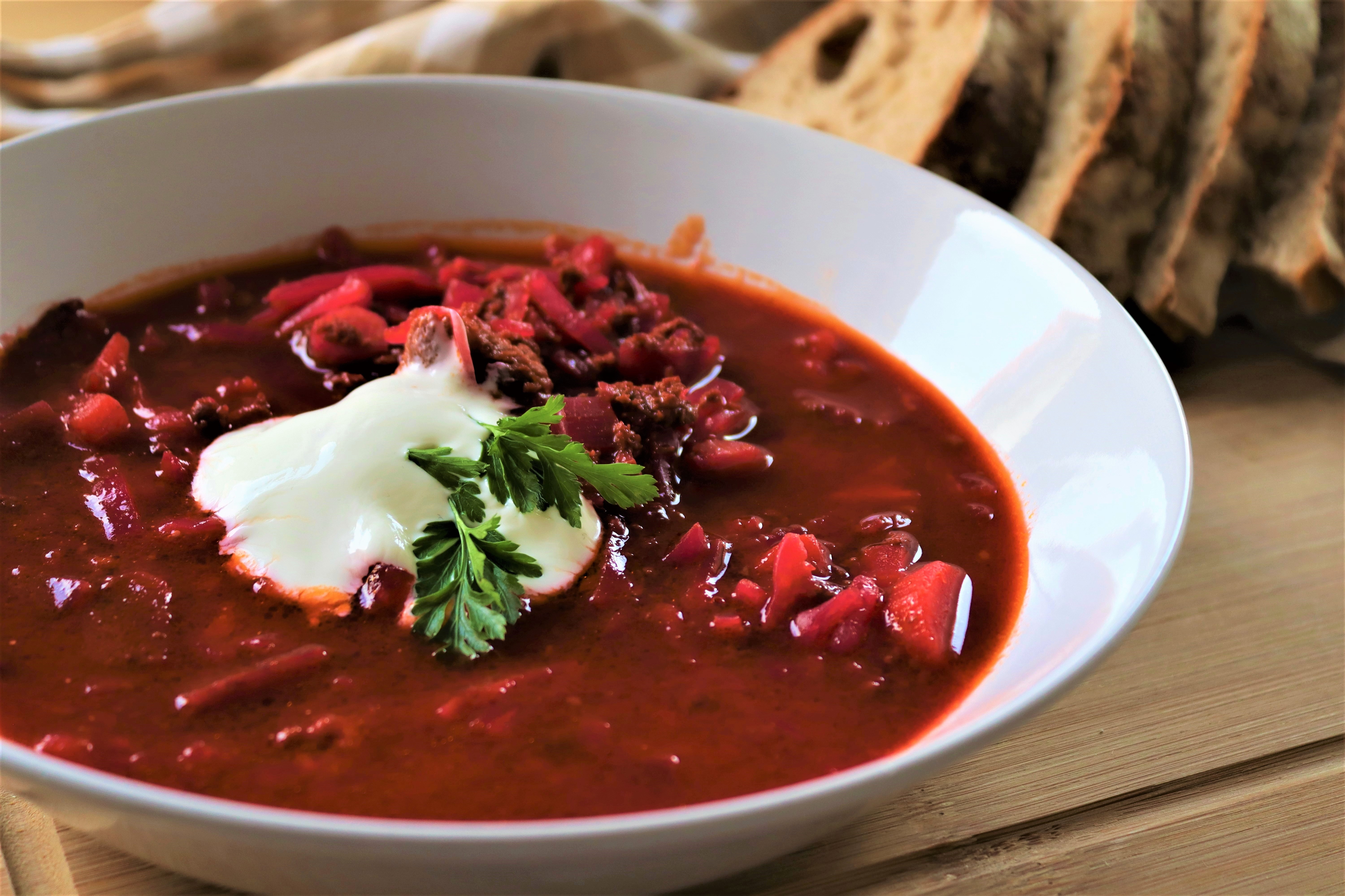 Když se řekne boršč, většina z nás si vybaví Rusko. Jak mě ale kdysi poučila jedna z Ukrajiny pocházející pomocná kuchařka Světlana (představte si autentický přízvuk): „...Verčo, abys věděla, to je naše jídlo, né ruské. Boršč pochází z Ukrajiny a já bych si ho teď fakt dala!“  Silný masový vývar, výrazná chuť, hromada zeleniny a typická červená barva - to je pravý boršč! Ať už je odkudkoliv. Tento recept pochází z rukou talentované Evy, která svými pokrmy rozproudí naše chuťové buňky pokaždé, když snídáme v Café New One (o Evě a její kolegyni Blance už jsme jednou psali, podívejte se!).