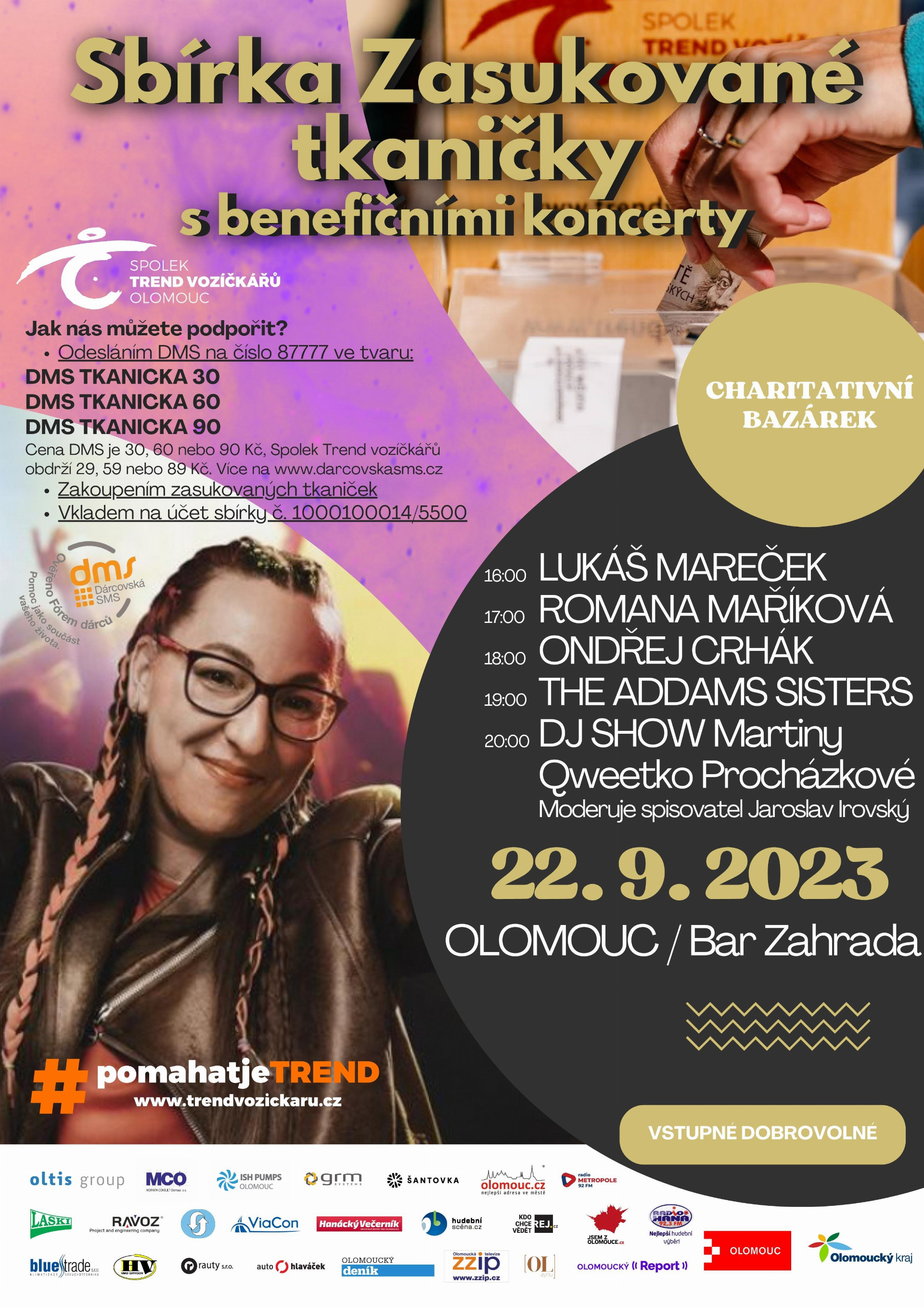 V rámci benefičních koncertů vystoupí muzikant Lukáš Mareček, svým sarkastickým humorem všechny přítomné potěší a rozesměje nevidomá umělkyně Romana Maříková a publikum se také může těšit na talentovaného patnáctiletého zpěváka a vycházející hvězdu Ondřeje Crháka. Svými písněmi pak nadchnou mladé dámy z kapely The Addams Sisters, které se staly Objevem roku Radia Haná. DJ show všechny roztančí olomoucká moderátorská legenda Martina Qweetko Procházková.