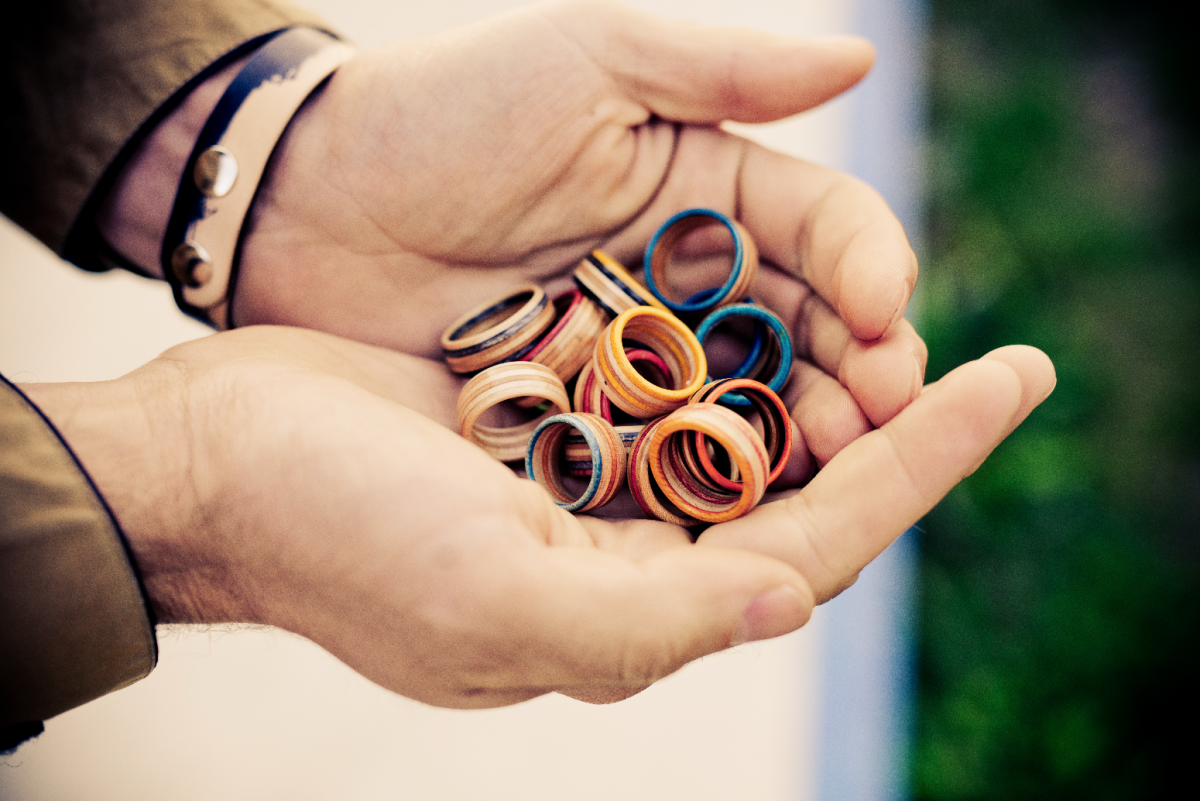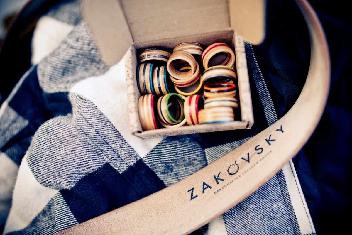 Šumperan Michal Hasman vdechuje starým zlomeným skejtům novou duši a posílá dál do světa tyto originální výrobky – prstýnky, přívěsky a přezky na opascích od Luďka Žákovského. Více info najdete na www.skaterecycle.cz