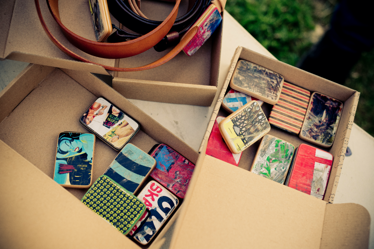 A co dělá Michalovy šperky tak osobitými? Pracovní postup je jeho tajemstvím, nejvíce času však zabere definitivní povrchová úprava. Jak nám bylo popsáno – skejtová deska je lepená ze sedmi vrstev různých druhů dřeva a každá firma tyto vrstvy různě dobarvuje. To je základní věc, která dělá tyto výrobky zajímavé. Rozmanitost produktů ovšem záleží na deskách, které dokáže Michal sehnat. „Mám pár lidí, kteří mi desky schovávají třeba i od kamarádů, ale většina je stejně vyhodí. Přemýšlím teď nad tím, jak a kde udělat ,sběrná místa‘, ale vše je ještě v plenkách. Zatím mám spolupráci s Darkslide skateshopem a Freeride barem v Praze, kde lze staré skejty nechat. Na web taky brzy přidáme sběrnou mapku.“