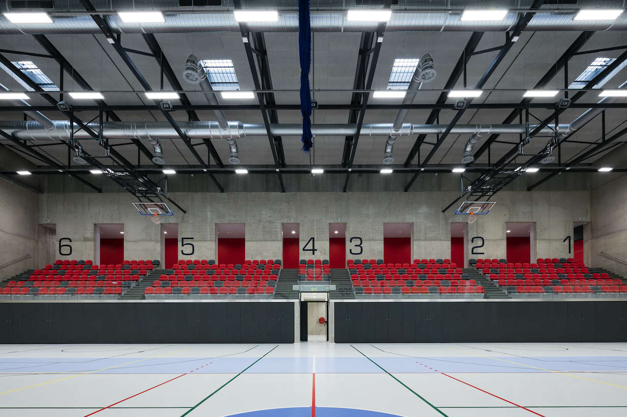 Součástí je také šatna pro rozhodčí a místnost maséra sportovců. Všechny tyto prostory jsou umístěny pod diváckou tribunou. Vstup do druhého podlaží je navržen ze vstupního foyeru pomocí schodiště a výtahu. Tudy se návštěvníci dostanou na tribunu a do společenské zóny, která obsahuje kanceláře vedení haly a místnost pro tiskové konference. Ta bude sloužit také pro skupinová cvičení. V této části jsou také zahrnuty prostory pro novináře a sportovní hosty s občerstvením, toaletami a malou tribunou umístěnou na jižní straně hřiště. Na protější straně sportovní haly se pak nachází prostor pro pracovny trenérů, kde budou probíhat také schůzky s rodiči malých sportovců.