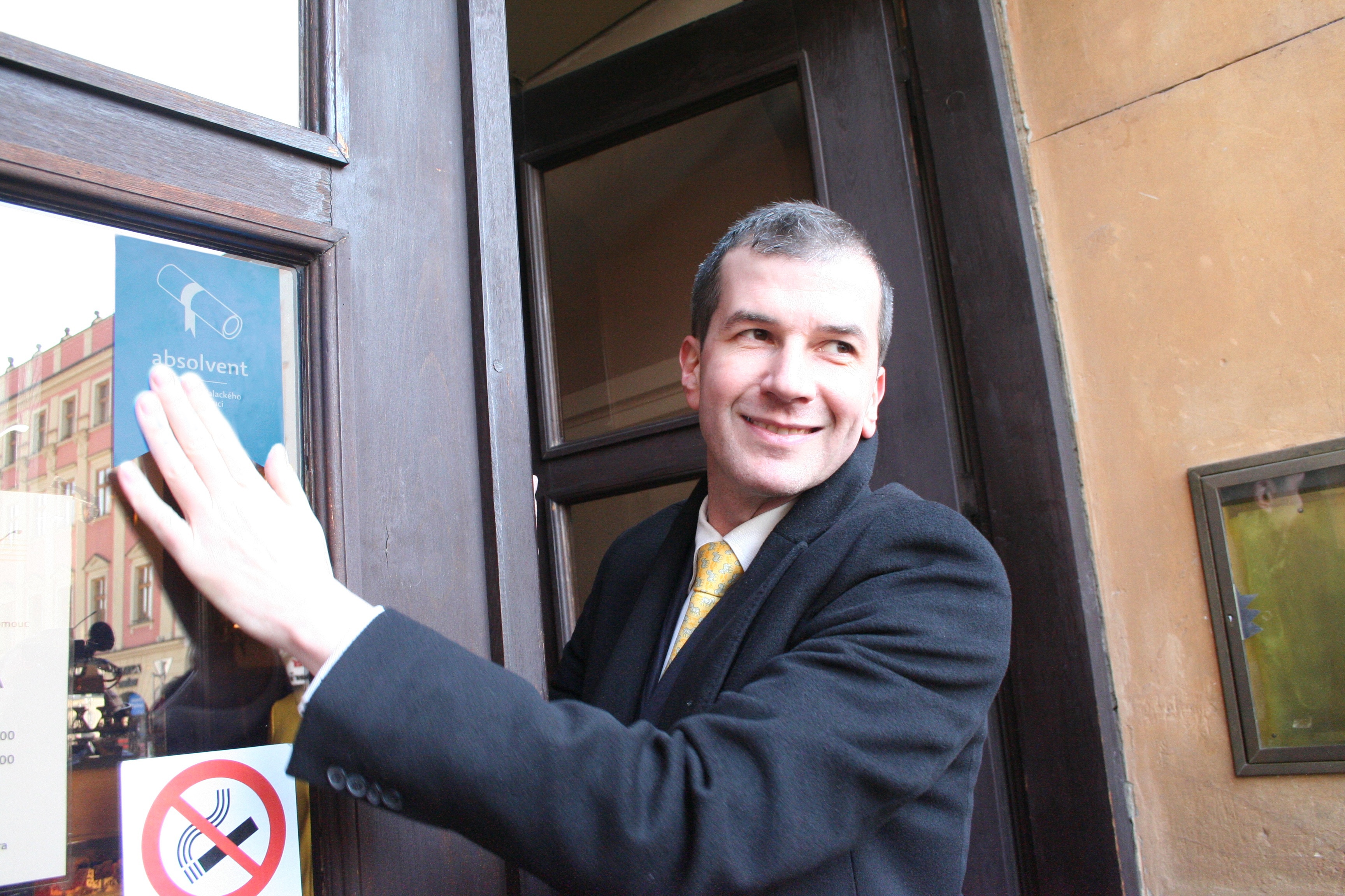Místa, kde absolventi mohou slevy při předložení karty uplatnit, jsou označena samolepkou programu ABSOLVENT. Dnes ji získala například kavárna Café Mahler na Horním náměstí. Samolepku na dveře nalepil host a tvář kampaně Jakub Železný.