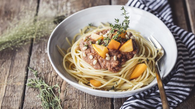 S tímto receptem nešlápnete vedle. Základ pevně stojí na rajčatech, tradiční italské surovině, a skvělé kombinaci bylinek. Omáčku zaručeně zjemní mascarpone. Teprve kaki jí však dodá netradiční chuťovou vrstvu.