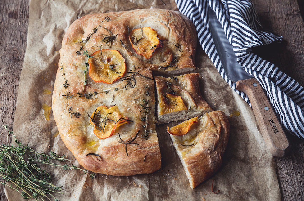 Dlouhá historie chleba jménem focaccia sahá za starověký Řím. Připravit jej umí snad každá italská máma a jeho rozmarýnová vůně neodmyslitelně patří k italské prostřené tabuli. V kombinaci s kaki dostane neobvyklou nasládlou chuť, po které se jen zapráší.