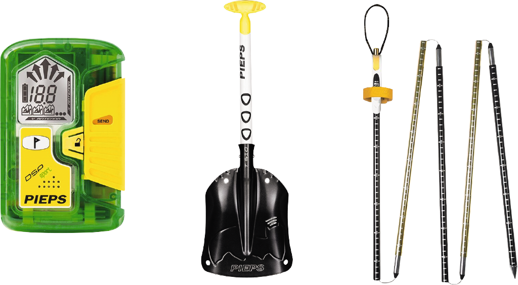 Zkušenější jezdci by neměli zapomínat ani na takzvanou svatou trojici, což je sněhová lopatka, lavinová sonda a lavinový vyhledávač pro případ možného ohrožení.
