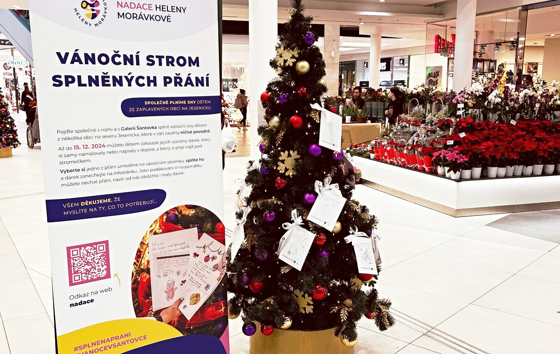 Pro mnoho dětí ze zasažených oblastí budou letošní Vánoce jiné. Tam, kde dříve stály vánoční stromky obklopené dárky, jsou nyní jen prázdné místnosti, mnohdy ještě zavánějící vlhkostí. Děti, které by si měly užívat nejkrásnější období roku, se místo toho potýkají s následky tragédie, která nenávratně ovlivnila jejich dětství. Proto vznikl projekt Strom splněných přání – iniciativa Galerie Šantovka a Nadace Heleny Morávkové. Jehož cílem je vnést do zasažených rodin kousek radosti a ukázat dětem, že i přes všechno, co ztratily, na ně svět nezapomněl.